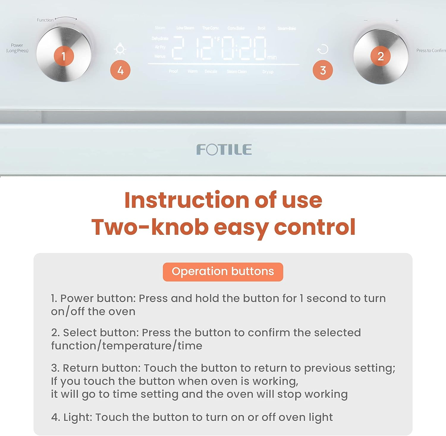 FOTILE ChefCubii 4-in-1 Countertop Convection Steam Combi Oven Air Fryer Dehydrator with Temperature Control, 40 Preset Menu and Steam Self-Clean, 1 CFT