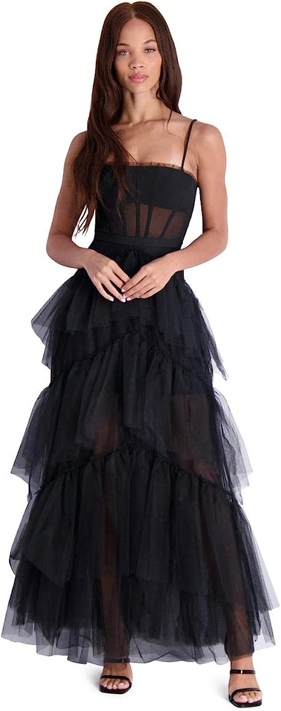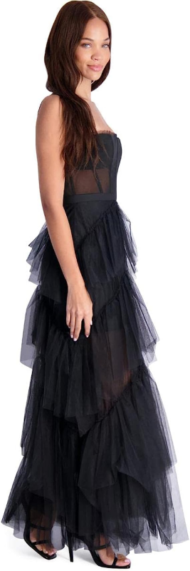 BCBG Max Azria Oly Women’s Tiered Ruffle Tulle Sleeveless Corset Evening Gown