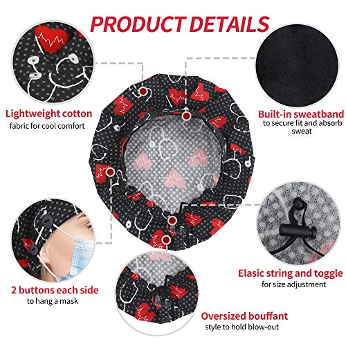 ABAMERICA 2 Pack Bouffant Caps with Button and Sweatband, Adjustable Scrub Caps for Women Men, One Size Fits All