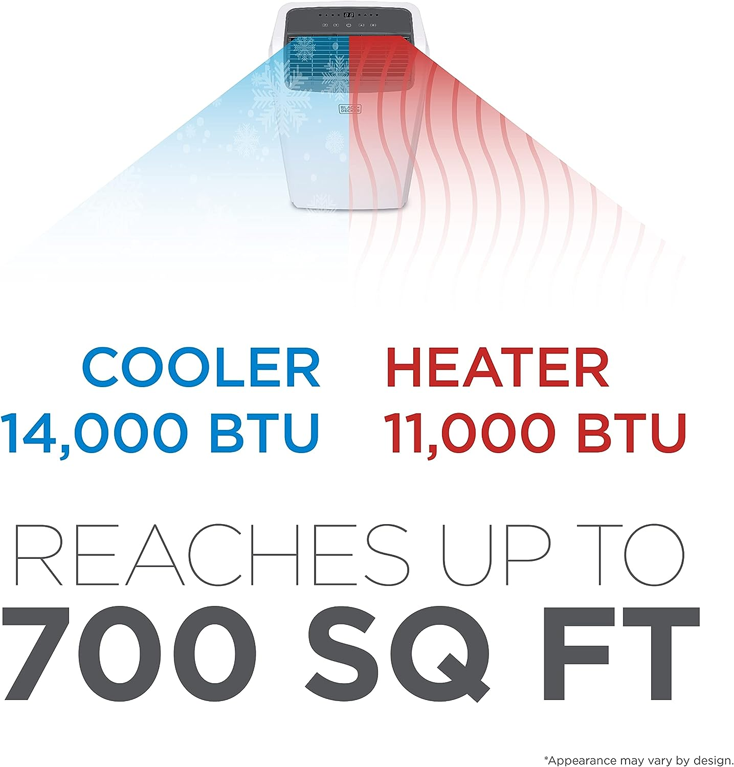 BLACK+DECKER Air Conditioner, 14,000 BTU Air Conditioner Portable for Room and Heater up to 700 Sq. Ft. with Remote Control, White
