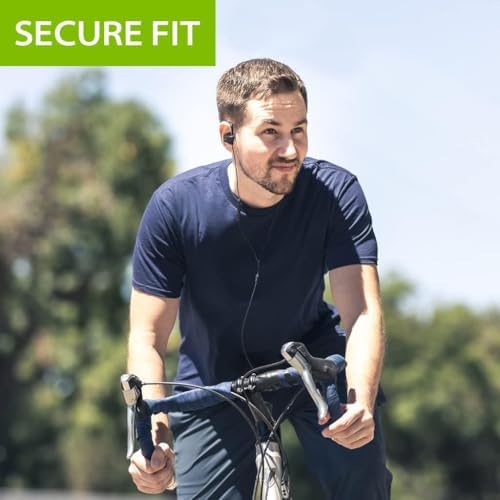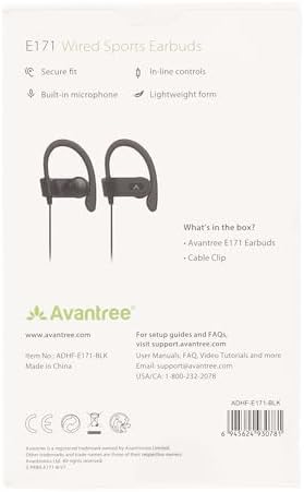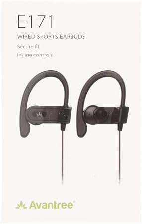Avantree E171 - AUX 3.5mm Wired Earbuds with Microphone & in-Line Volume Control, Compatible with Traditional 3.5mm AUX Phones Corded Headphones with Ear Hook for Running & Sports, Black