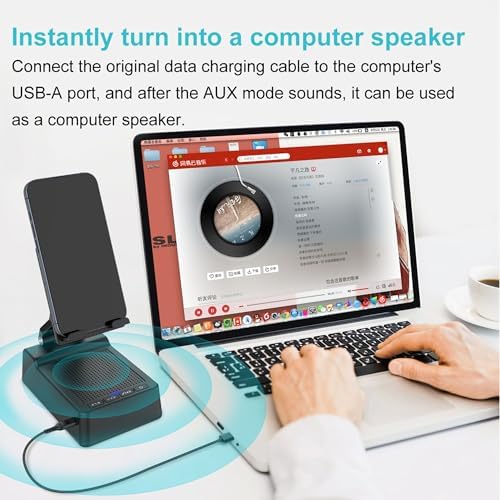 Cell Phone Stand with Wireless Bluetooth Speaker Adjustable Phone Holder Anti-Slip Base HD Surround Sound for Home Desk and Outdoors Compatible for Mobile Phone & Tablets