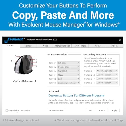 Evoluent – World's Original Vertical Mouse, Wired Ergonomic Mouse for Right Hand, Medium to Large, Helps with Carpal Tunnel and Wrist Strain, Customizable 6 Buttons, 4 Speed Settings, Comfortable Grip