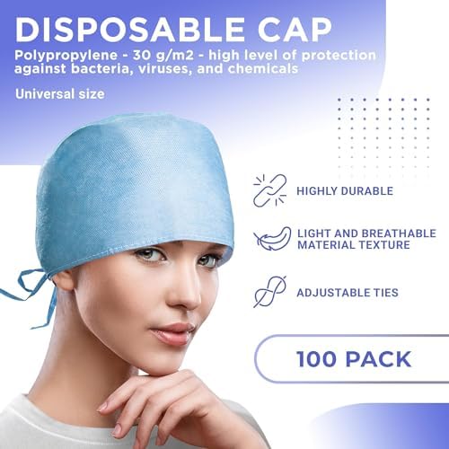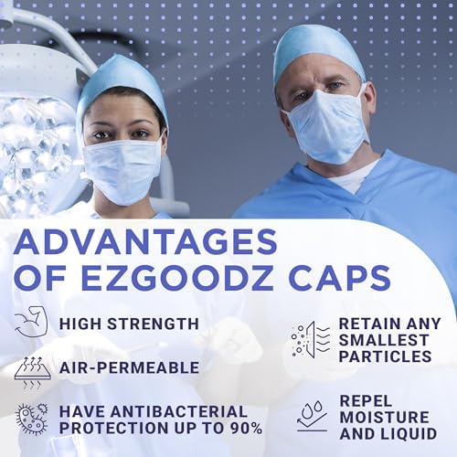 EZGOODZ Blue Disposable Surgical Caps for Women and Men. Pack of 100 Polypropylene Surgical Disposable Caps with Elastic Band 30 GSM. One Size Breathable Disposable Hair Covers for Hospital, Clinic