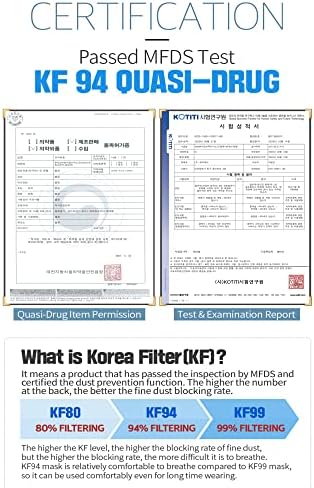 Please check the above documents(High Resolution Documents Available in Product Main Images) and indication to ensure the certificated KF94 face mask. KF94 masks are only made in Korea(KF94 means Korea Filter 94% which is approved by Korean Ministry).