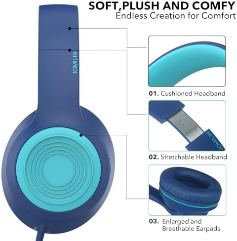 JOMILIN A8 Wired Over-Ear Headphones with Microphone, Lightweight Folding Portable Headset with 1.5M No-Tangle Cord, 3.5mm Plug in Headphones for Smartphone Tablet Computer MP3 / 4 (Blue)