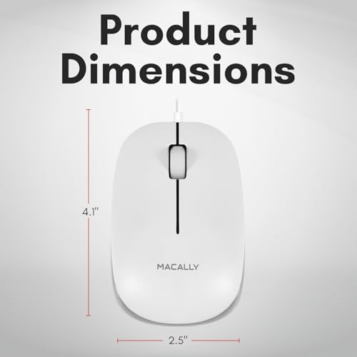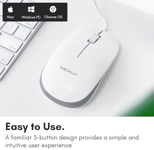 Macally USB Wired Mouse for Mac and Windows - Plug and Play 3 Button Corded Computer Mouse Wired for MacBook Pro/Air, Apple iMac, Laptop, PC Desktop, Notebook, Scroll Wheel Layout with Long Wire Cord