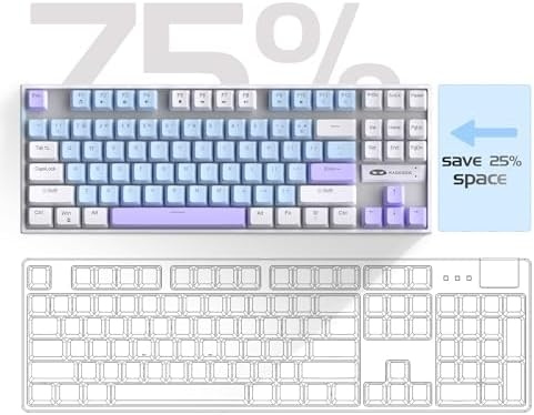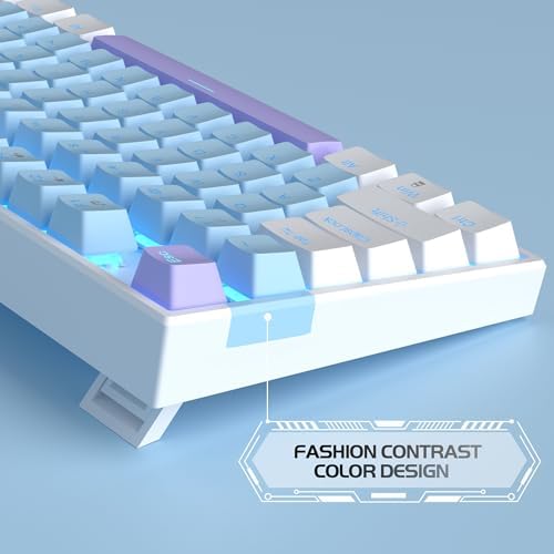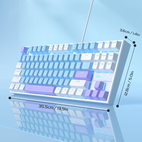 MageGee 75% Mechanical Gaming Keyboard, Blue Switch, LED Blue Backlit, 87 Keys Compact TKL Wired Keyboards for Windows Laptop PC Gamer - Blue/White