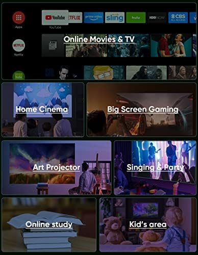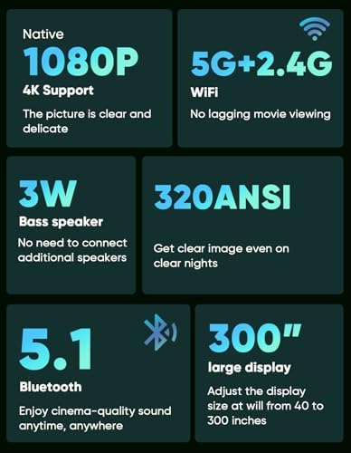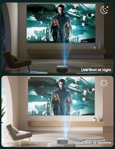The projector adopted the technology that supports 4K video source, build-in 6-layer coated glass lens, super HD resolution let your enjoy movies with family at day and night!