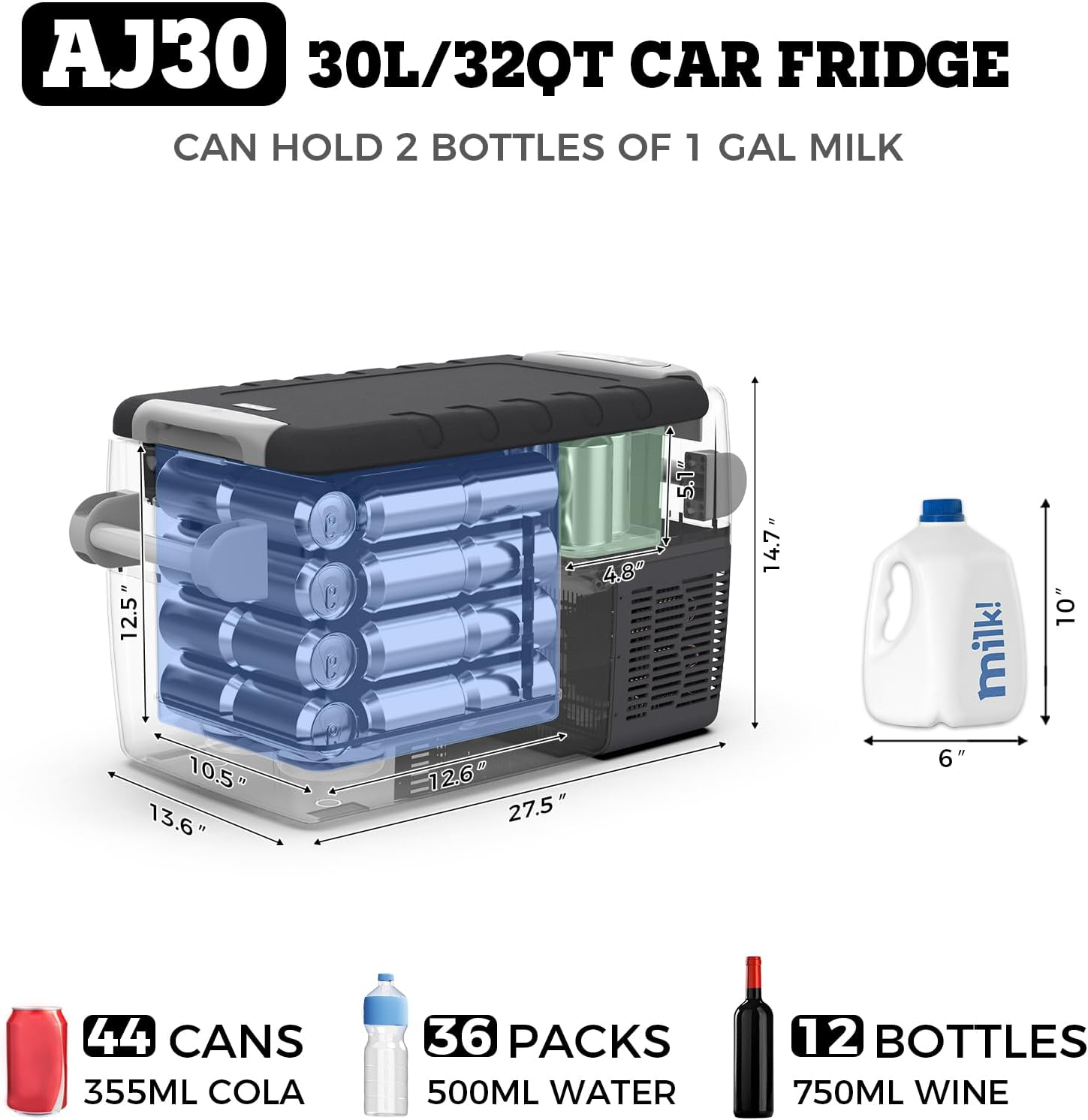 Setpower AJ30 Portable Refrigerator,Portable Freezer,32 Quart(30L) Electric Cooler,Car Refrigerator,12/24V DC Cable & 110/240V AC,Car Fridge for Camping,Truck,RV,Travel,Fishing,3-YEAR Warranty