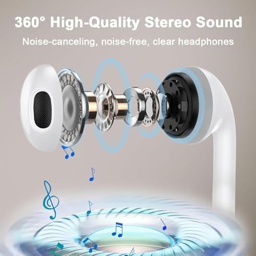 Wireless Earbuds, 42H Playtime Bluetooth 5.3 Headphones, HiFi Stereo Call Noise Cancelling Earbuds, IPX7 Waterproof Stereo in-Ear Earphones with LED Display for iOS Android (White)