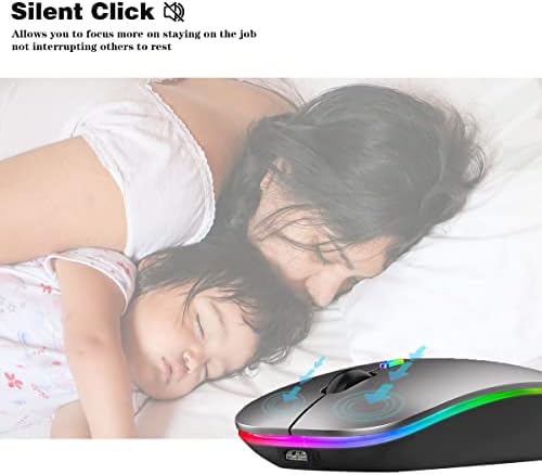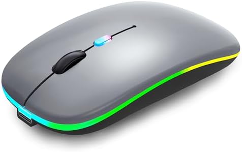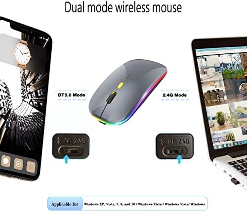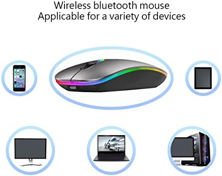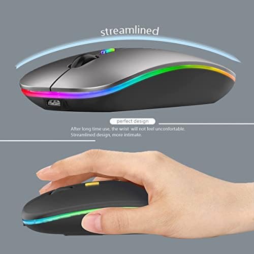 Wireless Bluetooth Mouse,LED Rechargeable Silent Slim Laptop Mouse,Portable(BT5.2+USB Receiver)Dual Mode Computer Mice,for Laptop,Desktop Computer,Tablet,Phone,TV.(Grey)