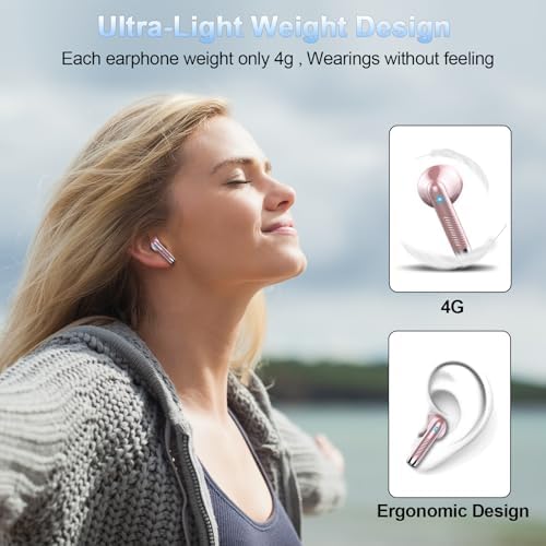 Wireless Earbuds, Bluetooth 5.3 Headphones LED Power Display, 2025 New Wireless Earphones, 4 ENC Noise Cancelling Mic, HiFi Stereo, 48H Playtime Mini Case IP7 Waterproof for Sport Walk