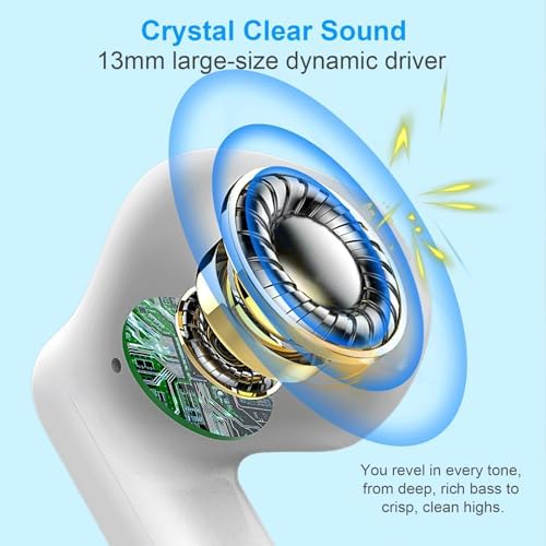 Wireless Earbuds, Bluetooth 5.4 Headphones In Ear with Noise Cancelling Mic, Bluetooth Earbuds Stereo Bass, IP7 Waterproof Sports Earphones, 32H Playtime USB C Charging White Ear Buds for Android iOS